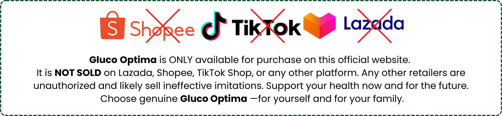 Ang Gluco Optima ay mabibili lamang dito sa aming official website. Anumang Gluco Optima na binebenta sa Lazada, Shopee, o TikTok ay FAKE.